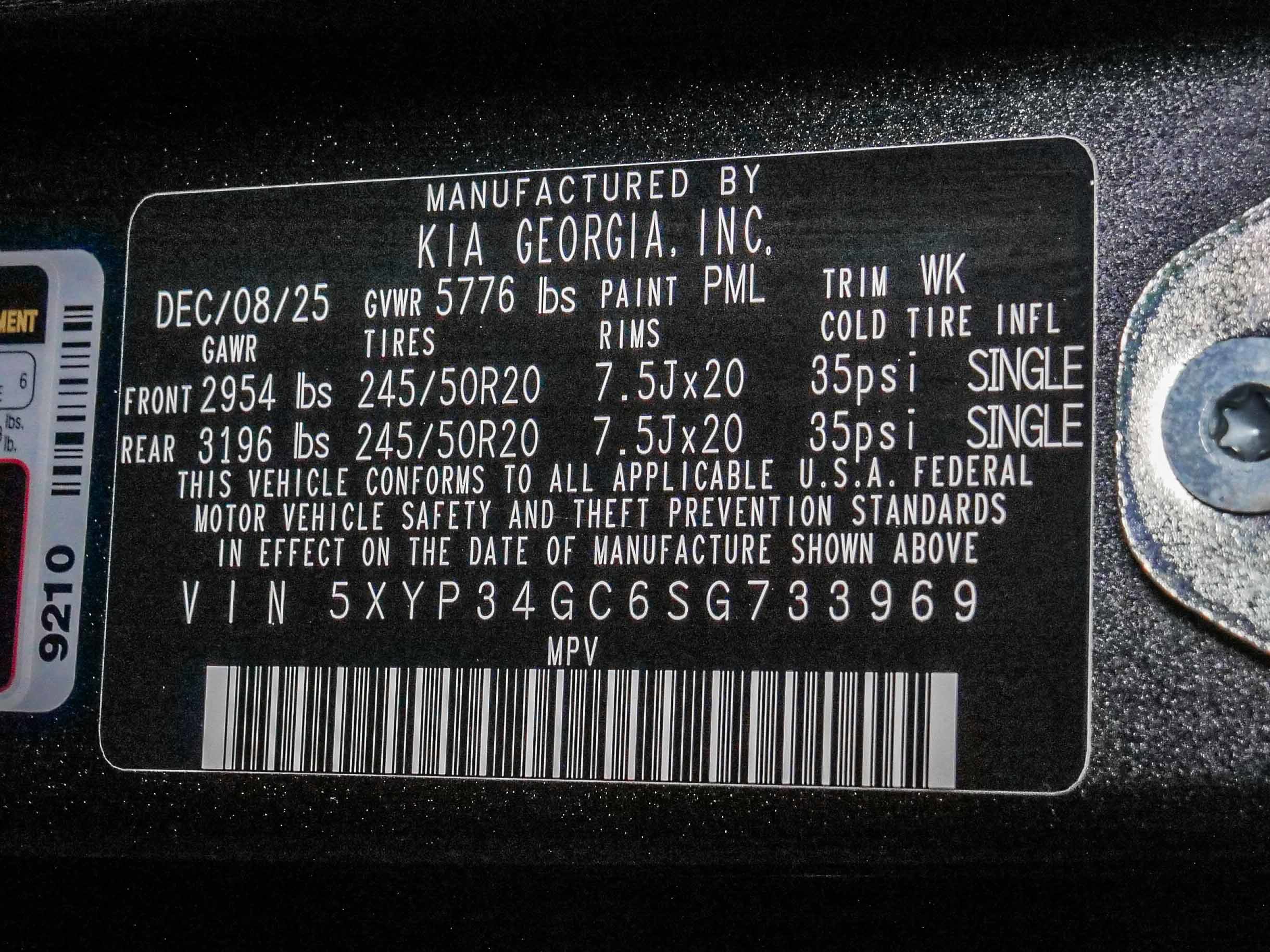 VIN: 5XYP34GC6SG733969