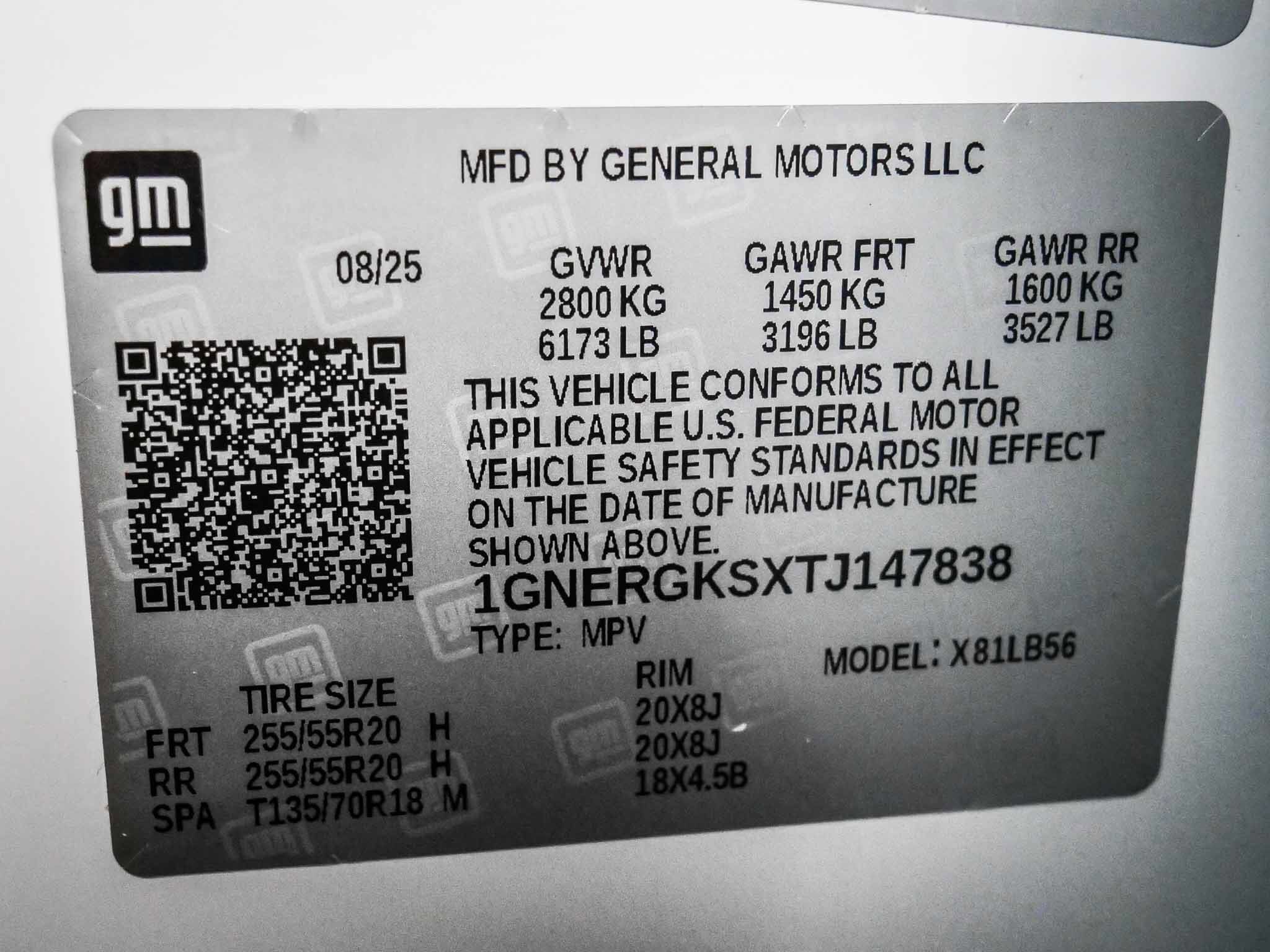 VIN: 1GNERGKSXTJ147838