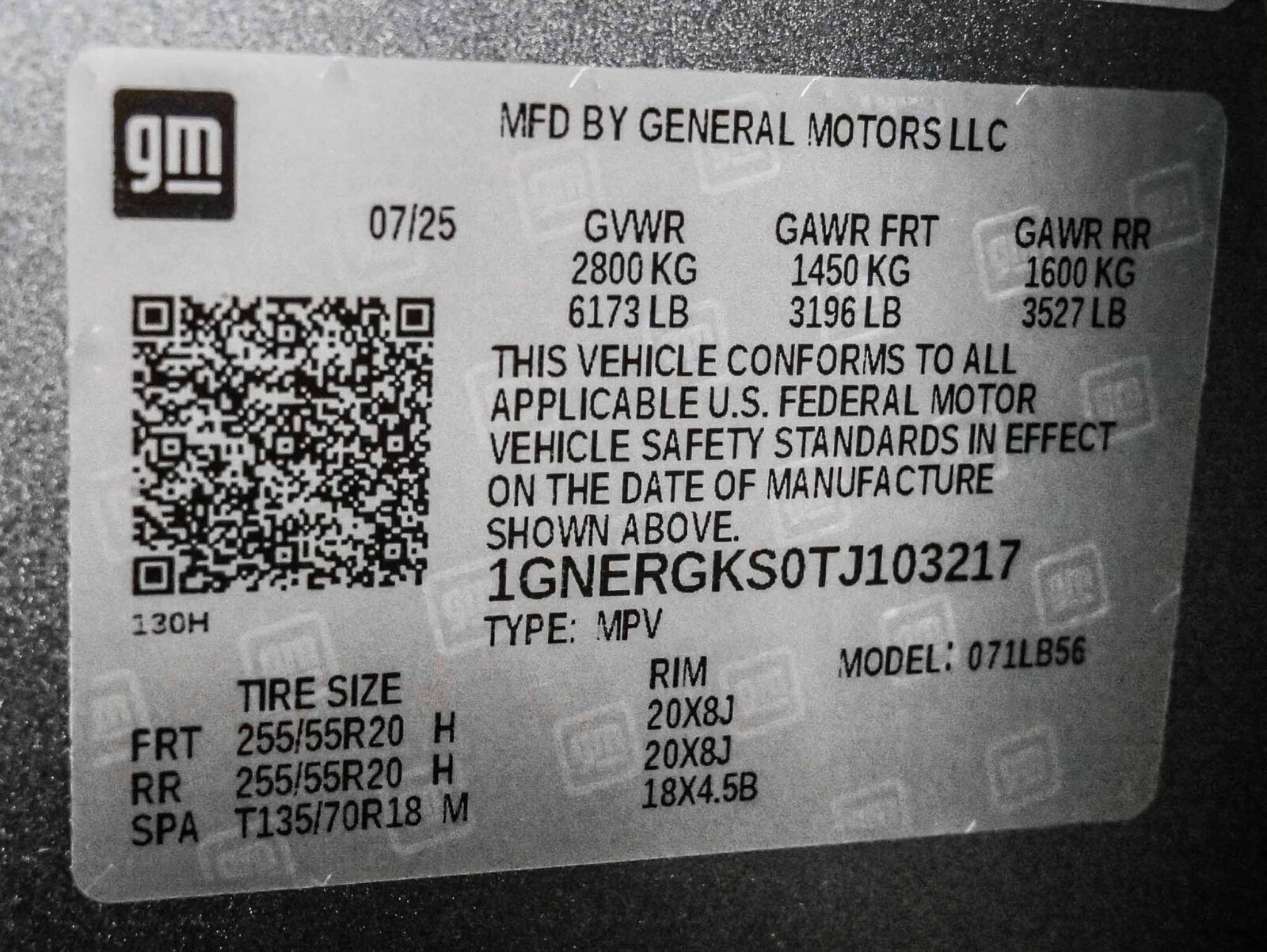 GVWR, 6173 lbs (2800 kg);