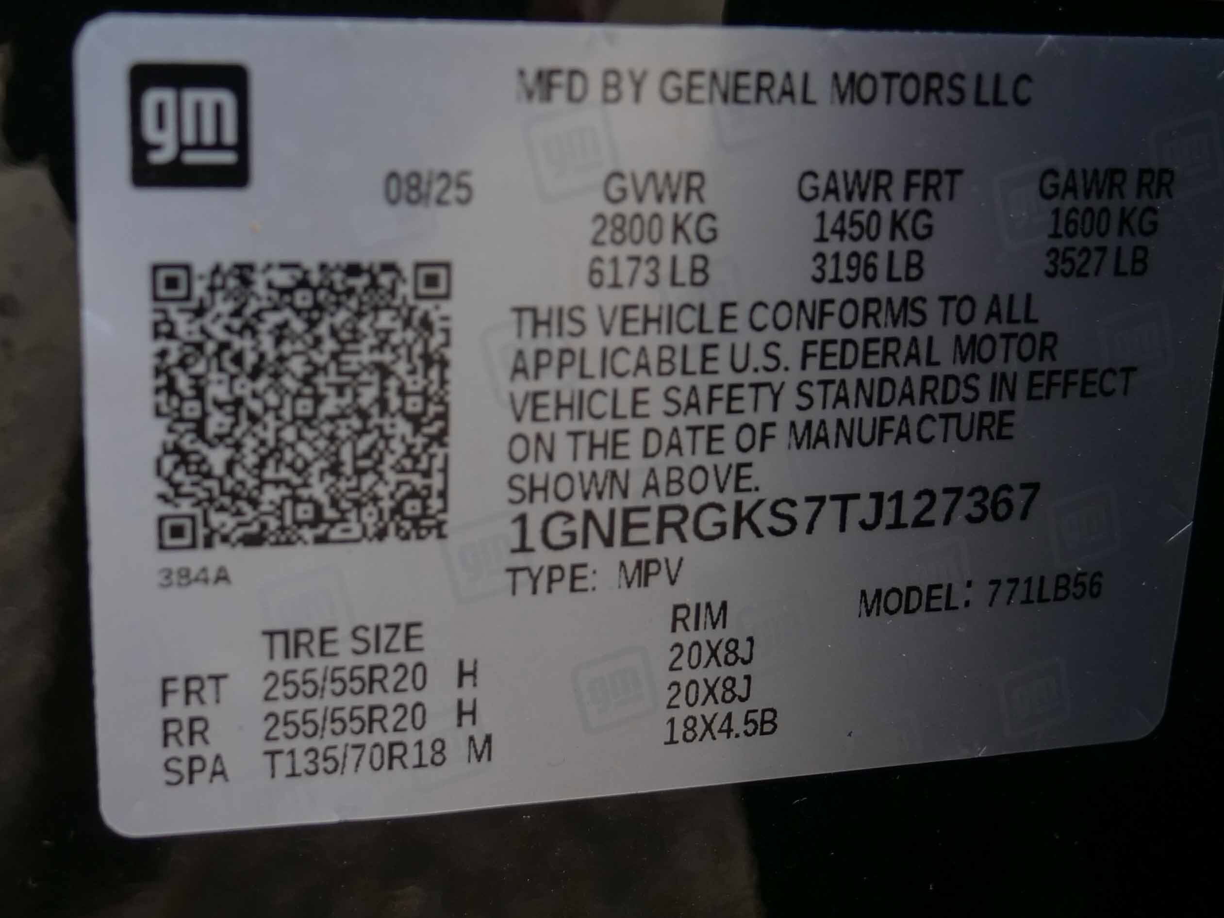 VIN: 1GNERGKS7TJ127367