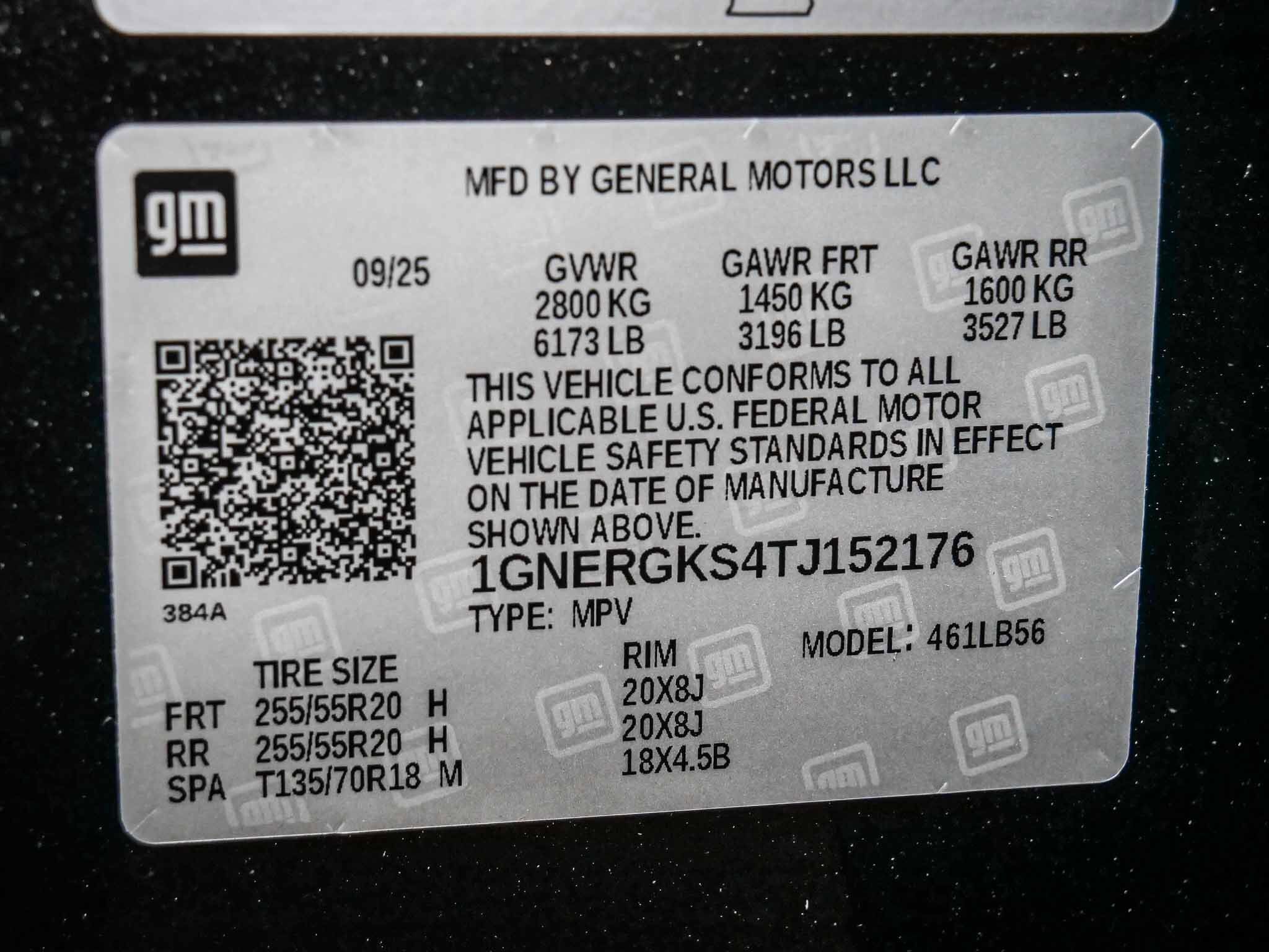 VIN: 1GNERGKS4TJ152176