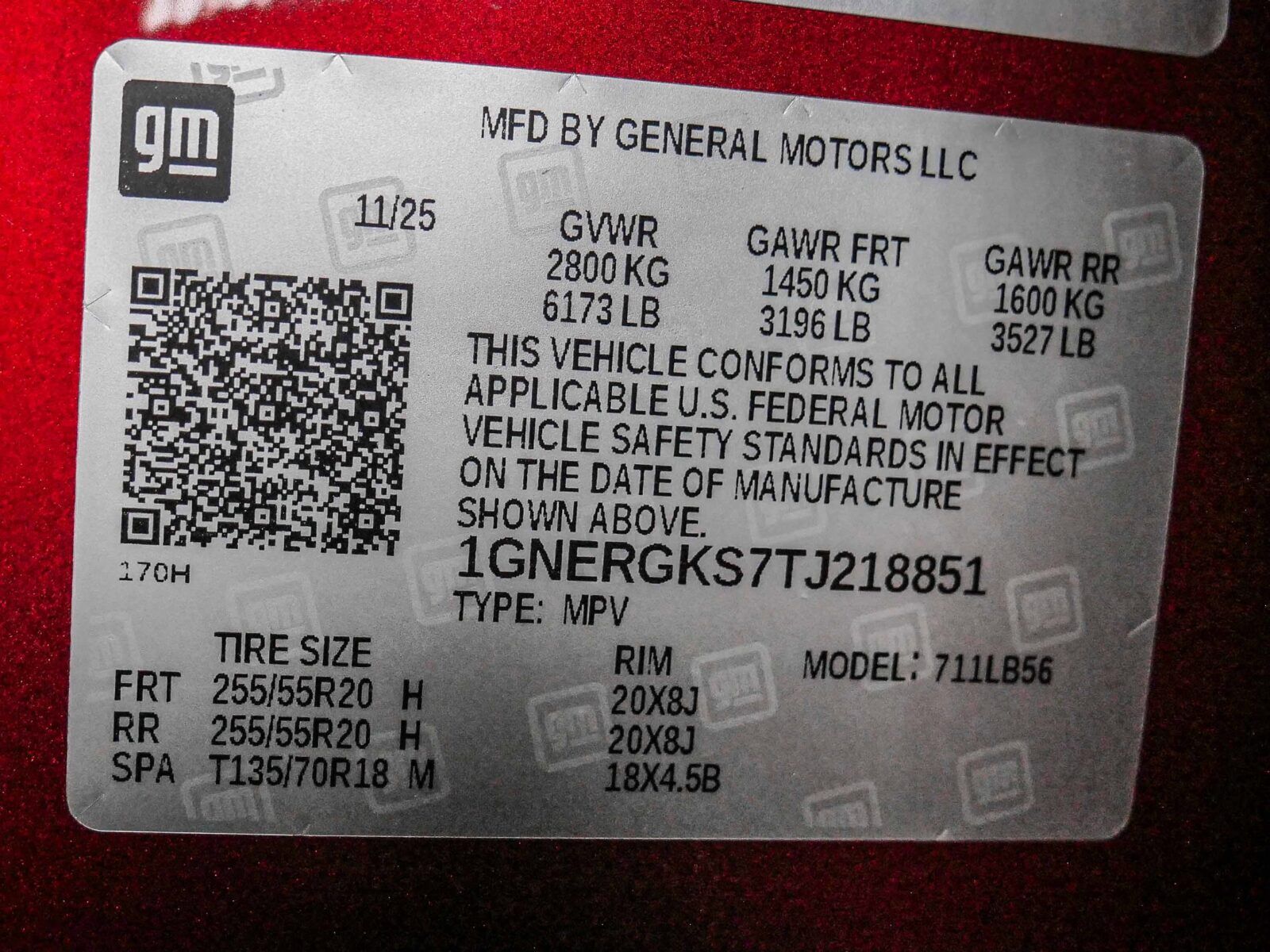 GVWR, 6173 lbs (2800 kg);