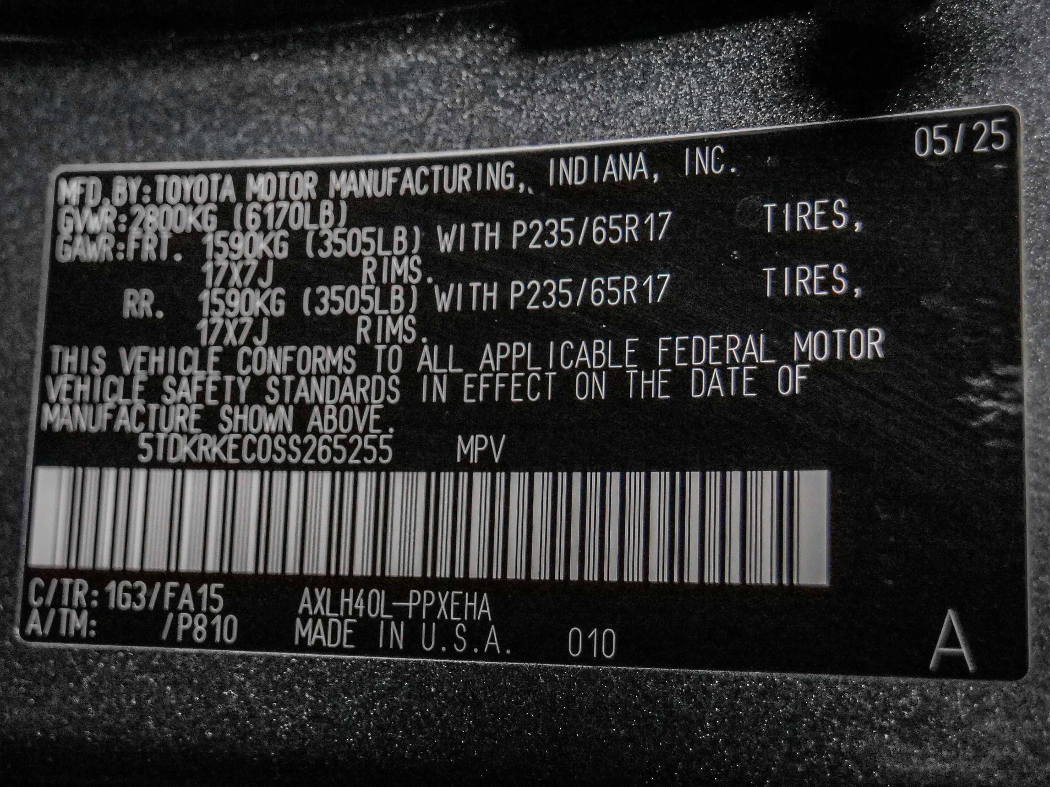 VIN: 5TDKRKEC0SS265255