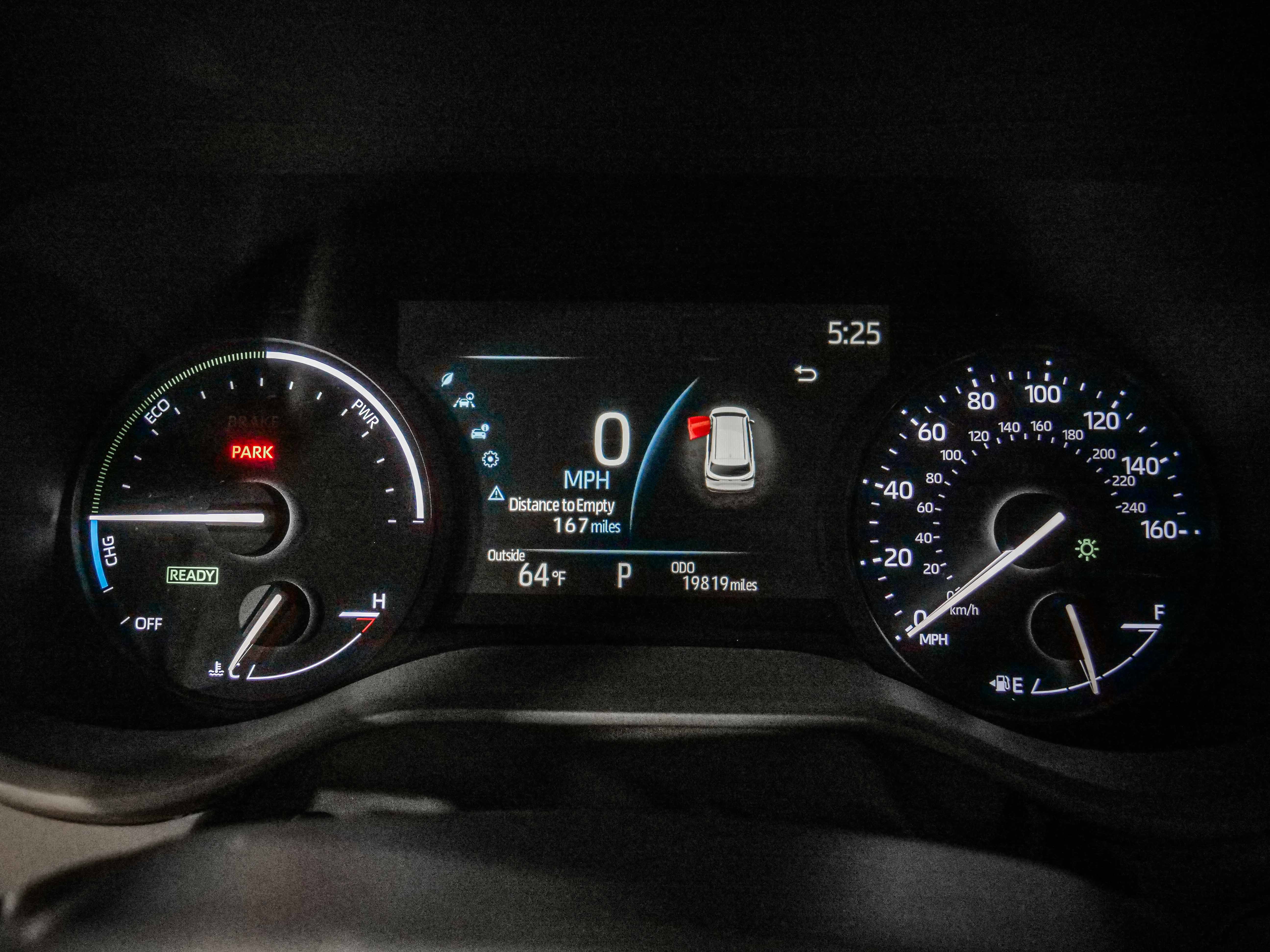 Gauges -inc: Speedometer, Odometer, Engine Coolant Temp, Tachometer, Traction Battery Level, Power/Regen, Trip Odometer and Trip Computer;