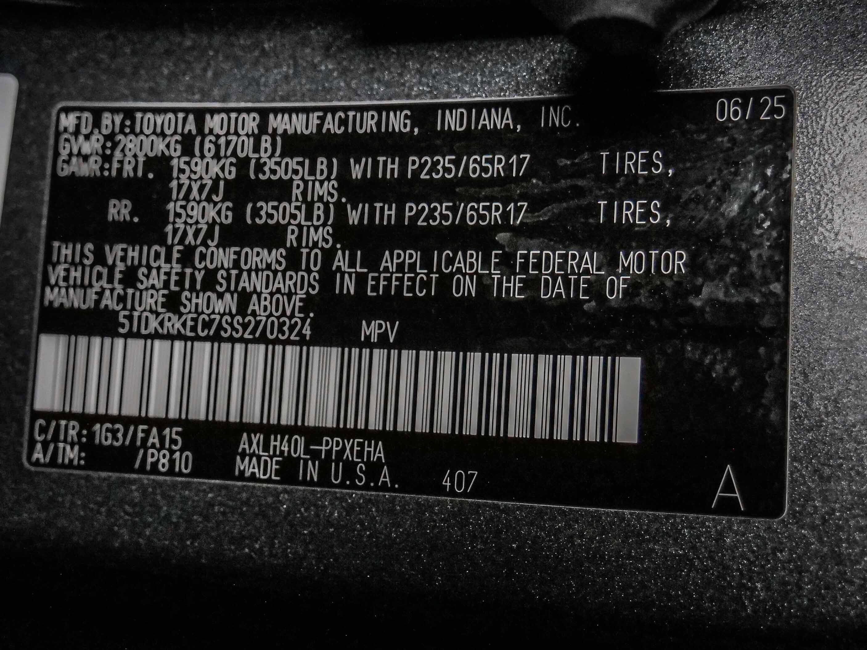 VIN: 5TDKRKEC7SS270324